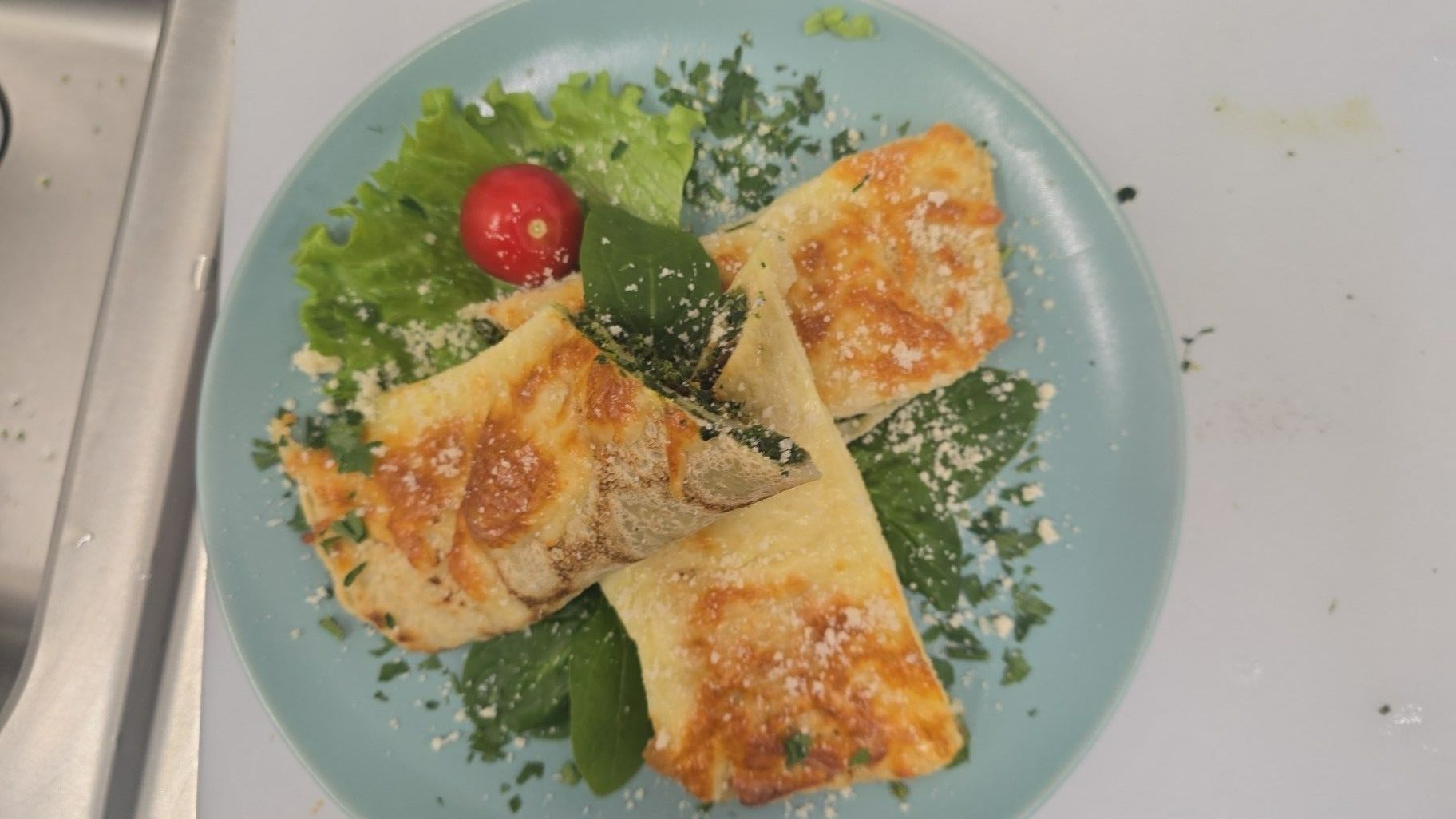 Nalesniki ze szpinakiem zapiekane z mozarella